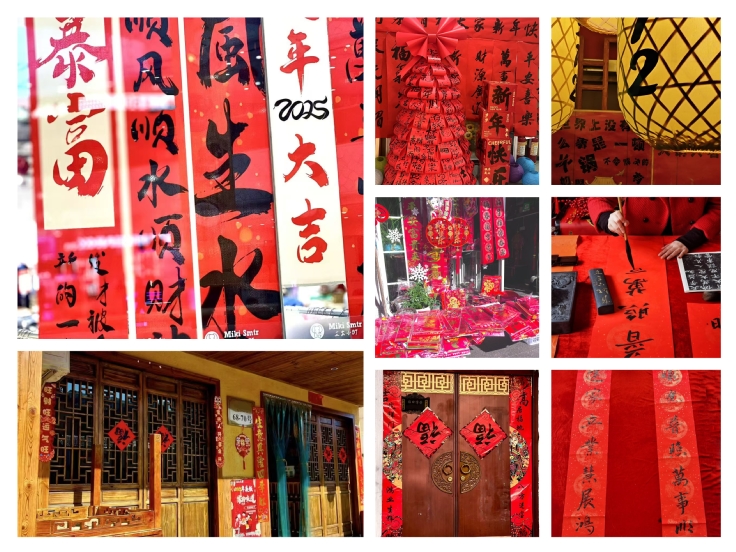 另一个不可或缺的春节元素便是春联。红彤彤的春联寓意着迎春接福,传递着新年的吉祥与喜庆。无论是毛笔书写的传统春联,还是印刷的现代春联,字里行间都弥漫着浓浓的节日氛围和祝福。许多家庭还邀请书法家现场挥毫,更增添了节日的仪式感与传统韵味。