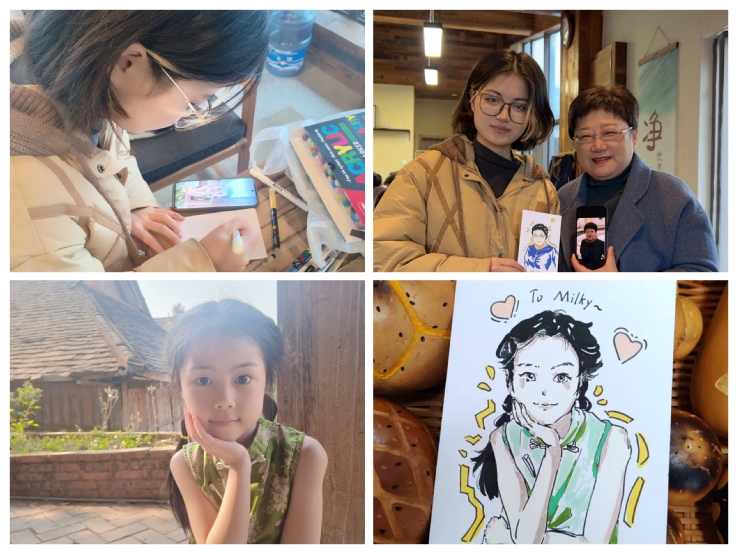 女教师们走进马郢村安徽建筑大学艺术学院非遗文创美育工作室(马郢工作站),观赏王河舒席、徽笔、宋锦、绒花、望江挑花等十余项非遗展品,近距离感受传统工艺的精妙匠心。在马郢村“清风明月”手作工坊,女教师们沉浸式体验非遗绒花制作。非遗传承人现场演示分丝、染色、勾条、打尖等工序,指导大家将蚕丝化为灵动花饰。每一片花瓣都凝聚着匠心,让我们触摸到传统文化的温度。活动特别设置“师者风韵”肖像创作环节,艺术学院2022级动画专业学生张婷婷现场为女教师手绘肖像。她以细腻笔触精准捕捉老师们的个性特质,惟妙惟肖的画作赢得阵阵掌声。在田园茶室,大家伴着古筝和箫悠扬的旋律品茶,分享非遗创作感悟。马郢村凡辰马会的三匹骏马惊喜亮相,与女教师们亲切互动,为节日增添灵动生机。
