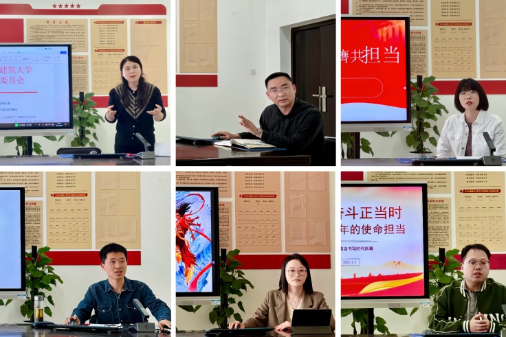 学院党委副书记任磊向同学们讲述了中国共产主义青年团成立的历史,介绍了中国共产主义青年团团徽、团旗及团歌,让大家深刻感悟到新时代青年要积极向组织靠拢,坚定理想信念,担当起时代责任。团委书记孙长玥鼓励同学们积极参加主题团日活动,发挥创新意识和青春活力,在实践中传承五四精神,做新时代优秀青年。辅导员陈晓天以“学习力就是竞争力”为题,希望同学们在创业实践中淬炼理想信念,锤炼思维深度,以昂扬姿态把握人生选择,绽放青春价值。辅导员施林坡结合新时代青年的使命与担当,号召大家学习2025年全国两会精神,激发同学们“青春逢盛世,奋斗正当时”的责任感和使命感。辅导员袁婧卓以“青春为祖国,挺膺共担当”为题,并列举两位优秀学姐的学习经历,希望大家埋头苦干,培养吃苦耐劳的精神,做时代能吃苦的好青年。辅导员党秋晨向同学们解开文化自信与科技创新的青春密码,以《哪吒2》与DeepSeek为例, 激励同学们学习青年创客的拼搏创新精神,让中华文化与科技自强的浪潮同频共振。