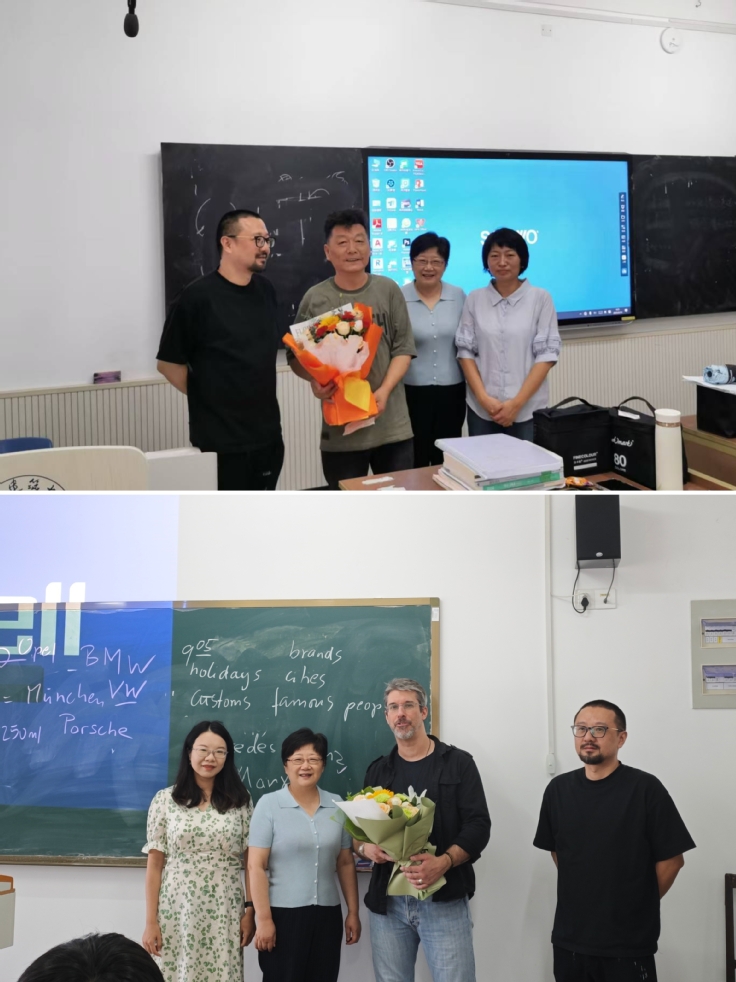 2024环境设计(中外合作)专业教室外教Marc Wiechmann老师欣喜地接过鲜花他由衷感谢学院领导的祝福,高兴地表示:“今天正好是我在安建大的第一今天的温馨经历令我非常难忘。