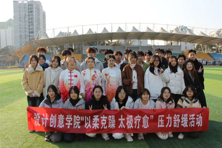 本网讯 冬日寒意渐浓,为帮助同学们缓解压力、在传统养生智慧中寻找内在平静,设计创意学院近日举办“以柔克躁·疗愈太极”压力舒缓主题活动。活动以“轻科普+沉浸体验”的新颖形式,带领学生亲身感受太极文化中“松而不懈”的舒缓力量。