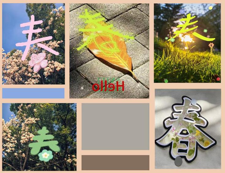 同学们漫步校园,以草木为笔、光影为墨,将樱花、新叶、晨光等自然意象融入“春”字笔画,或叠印于繁花枝头,或点缀在绿茵之间,让汉字在春日里绽放鲜活生命力,尽显青年学子的艺术巧思与创造活力。