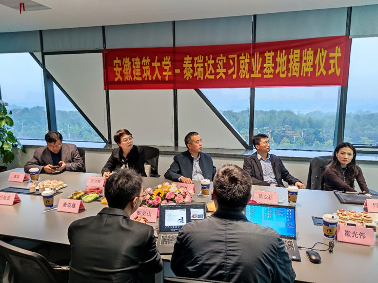 双方在会上签订战略合作协议,并为安徽建筑大学实习就业基地揭牌。会后校领导参观了泰瑞达的办公现场,并看望了我校在泰瑞达工作的历届毕业生。