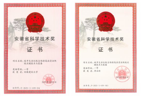 近日在安徽省科学技术奖励大会上,“城市生活垃圾自维持高温清洁燃烧关键技术与装备”荣获2021年安徽省技术发明一等奖。该成果由机电学院李永玲老师联合合肥工业大学、安徽皖能环保发电有限公司等单位共同开发。