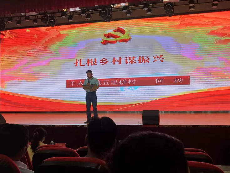 我校驻村干部、千人桥镇五里桥村第一书记何杨不畏强手,紧扣主题晒成绩、比亮点、谈思路,传经验,经过激烈角逐,荣获本次演讲比赛第四名。通过此次活动诠释了建大人的忠诚与担当,传播了建大正能量,为学校赢得了良好声誉。(文/图:何杨 审稿:吴运传)