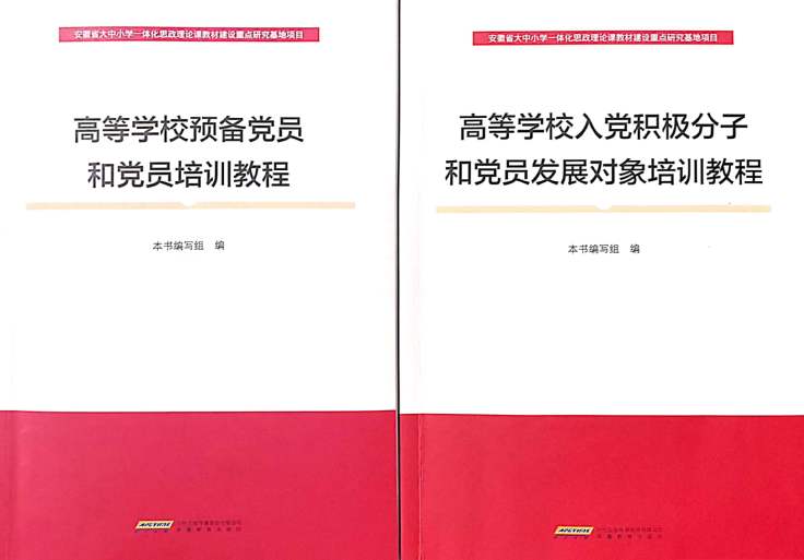 本网讯 为深入学习习近平新时代中国特色社会主义思想和贯彻落实党的二十大精神,认真落实《中国共产党普通高等学校基层组织工作条例》《中国共产党支部工作条例(试行)》《中国共产党党员教育管理工作条例》等高校党建工作制度条例,巩固深化主题教育成果,加强党建工作理论研究,做好入党积极分子、发展对象和预备党员教育培训工作。近日,由合肥工业大学主编,安徽建筑大学等4所省属高校参编的《高等学校入党积极分子和党员发展对象培训教程》《高等学校预备党员和党员培训教程》已由安徽教育出版社正式出版。校党委书记孙道胜任编委会副主任,校党委常委、组织部(党校)部长吴运传任副主编;吴运传、马克思主义学院教师万思贤编写《党章是党的根本大法》章节、马克思主义学院党总支书记李万银、马克思主义学院教师王亚洋编写《党的宗旨和作风》章节。