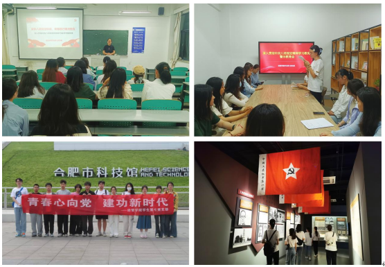 党支部不断加强党建工作模式、教育载体、实践成效等方面的探索,积极构建“1+3+5”学习教育体系,即“1个核心、3支队伍、5大平台”。以党支部建设为核心,聚焦学生党员、入党积极分子、团员青年三支队伍,着力构建“三会一课”、主题党日、主题班会、志愿服务、社会实践五大平台,使思想引领由被动型向自主型、由理论型向实践型、由单一型向融合型转变。支部书记金三人以“深学八项规定铸魂,青春践行廉洁担当”为题讲授专题党课、召开深入贯彻中央八项规定精神学习教育警示教育会、开展“品书立心,严风铸魂”主题党日等活动,着力推动学习教育走深走实,不断增强支部的创造力、凝聚力、战斗力;组织支部党员、入党积极分子及学生代表赴渡江战役纪念馆、合肥市科技馆、安徽省博物馆、常青街道社区等开展社会实践活动,探索构建校内校外相结合、线上线下相补充、理论实践相统一的学习教育体系。